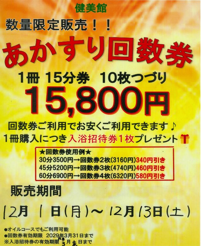 アカスリ回数券有効期限:2029年3月31日まで