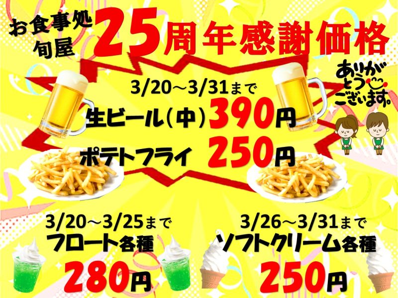 25周年企画!旬屋特別価格メニュー!!