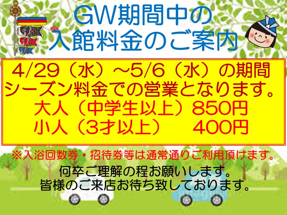 ゴールデンウィーク期間の入館料金のご案内